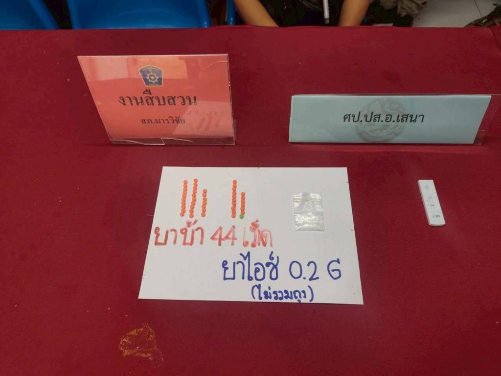 ยาเสพติดให้โทษ ประเภทที่ 1 (ยาบ้า) จำนวน 44 เม็ด และยาไอซ์ จำนวน 0.2 กรัม