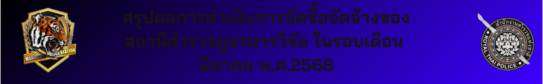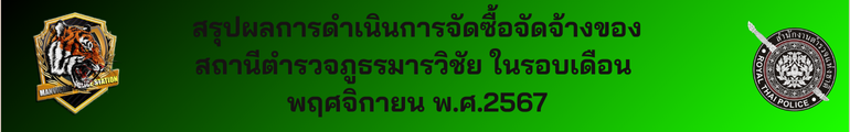 สถานีตำรวจภูธรมารวิชัย ได้สรุปผลการดำเนินการจัดซื้อจัดจ้าง (สขร.1) ประจำเดือน โดยมีข้อมูลรายละเอียดผลการจัดซื้อจัดจ้าง ได้แก่ งานที่ซื้อหรือจ้างวงเงินที่ซื้อหรือจ้าง ราคากลาง วิธีการซื้อหรือจ้าง รายชื่อผู้เสนอราคาและราคาที่เสนอ ผู้ได้รับกำรคัดเลือกและราคาที่ตกลง เหตุผลที่คัดเลือกโดยสรุป เลขที่และวันที่ของสัญญำ หรือข้อตกลงในกำรซื้อหรือจ้าง โดยจำแนกข้อมูลเป็นรายเดือน เผยแพร่เป็นประจำทุกเดือน  ช่วง 6 เดือนแรกของปีงบประมาณ พ.ศ. 2567 มีรายละเอียดดังปรากฏด้านล่างนี้